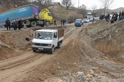 Лейлектин Самат айылында сайга кулаган унаа жолду тосуп калып, убактылуу жол салышты
